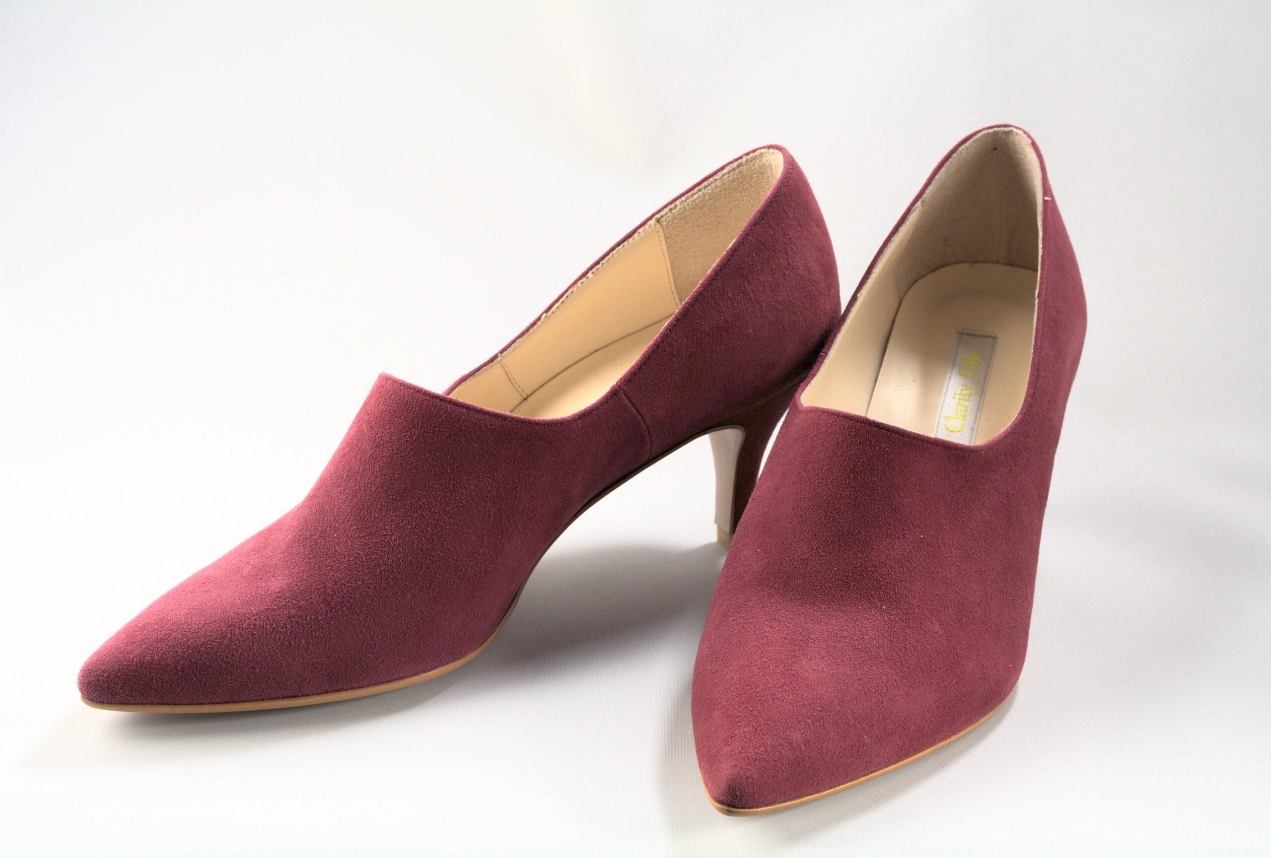 甲が深めデザインのポインテッドパンプス,ブーティに近い深さがおしゃれ度アップ