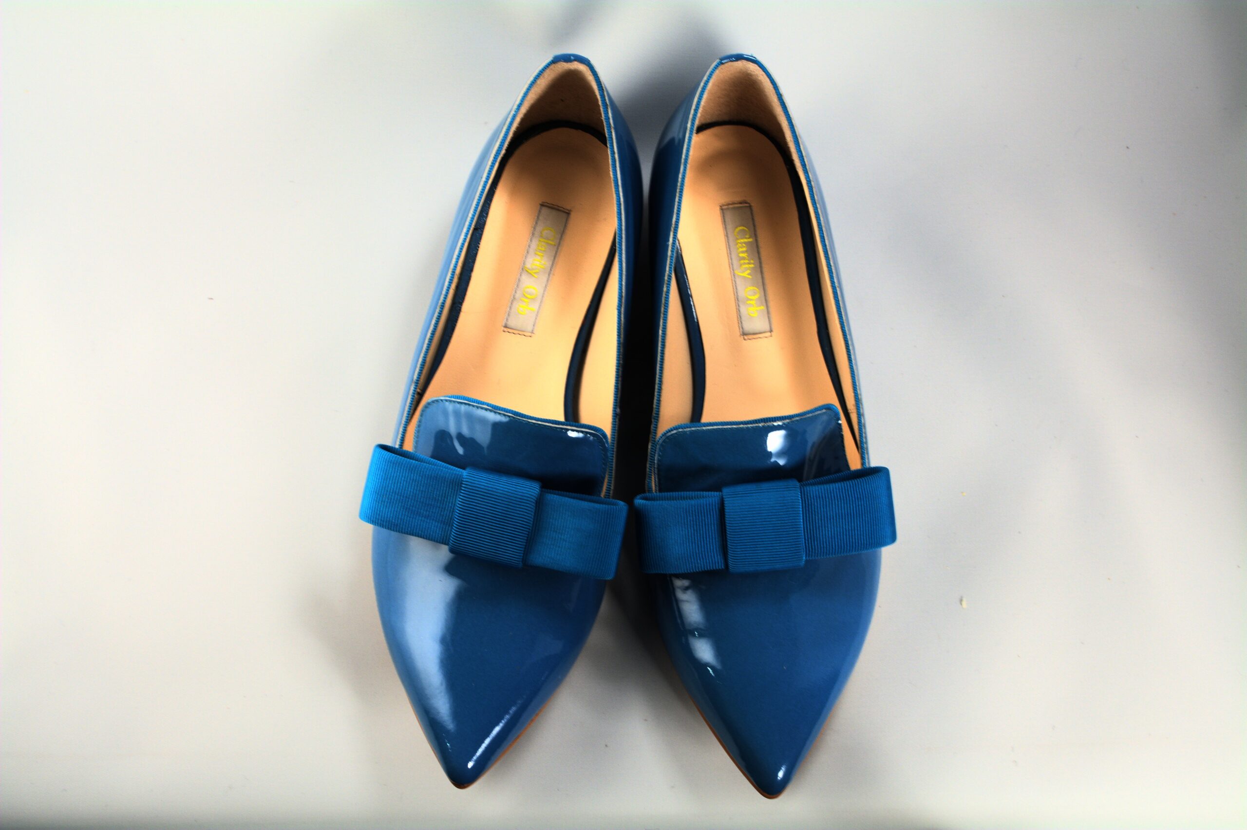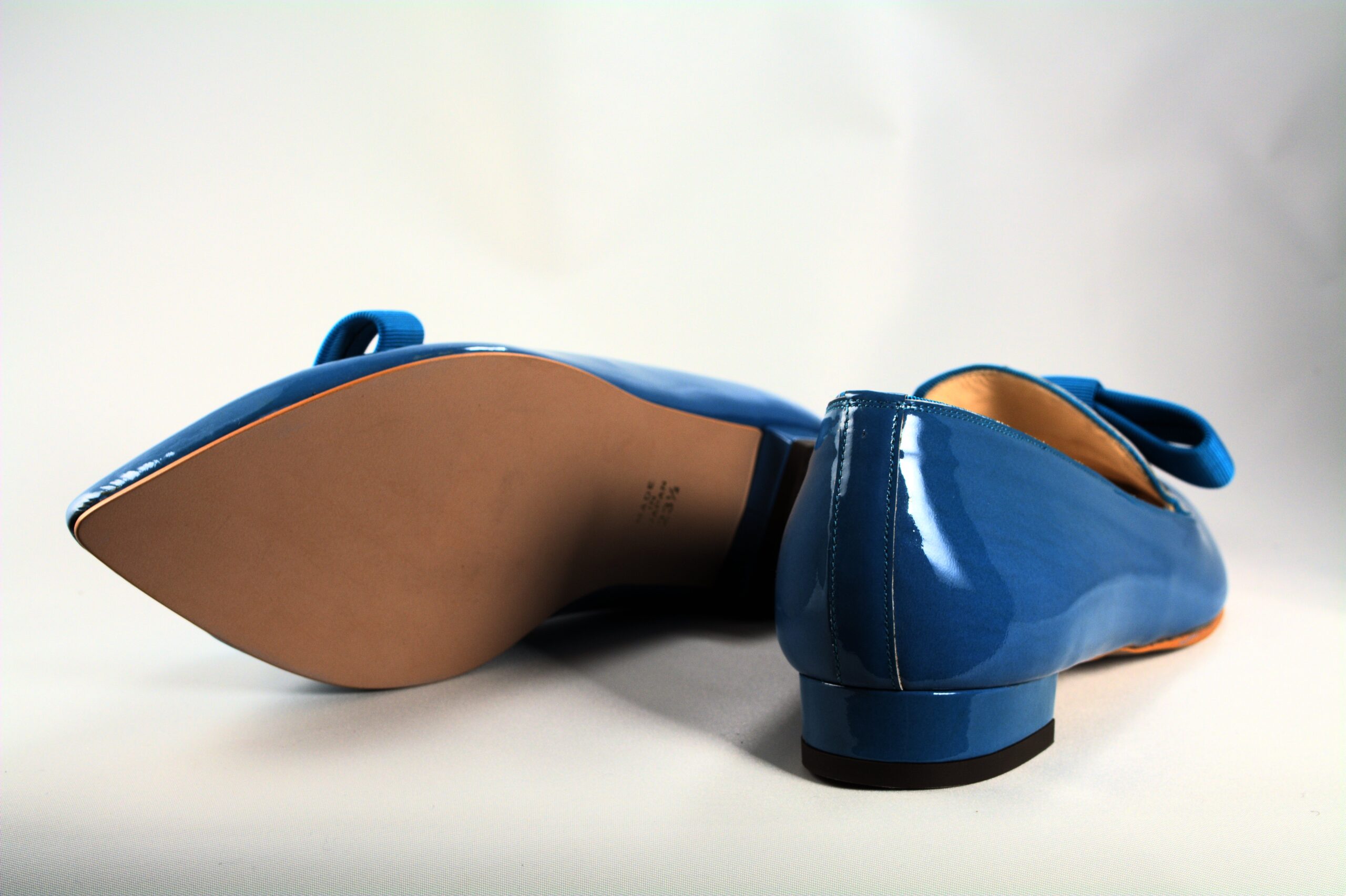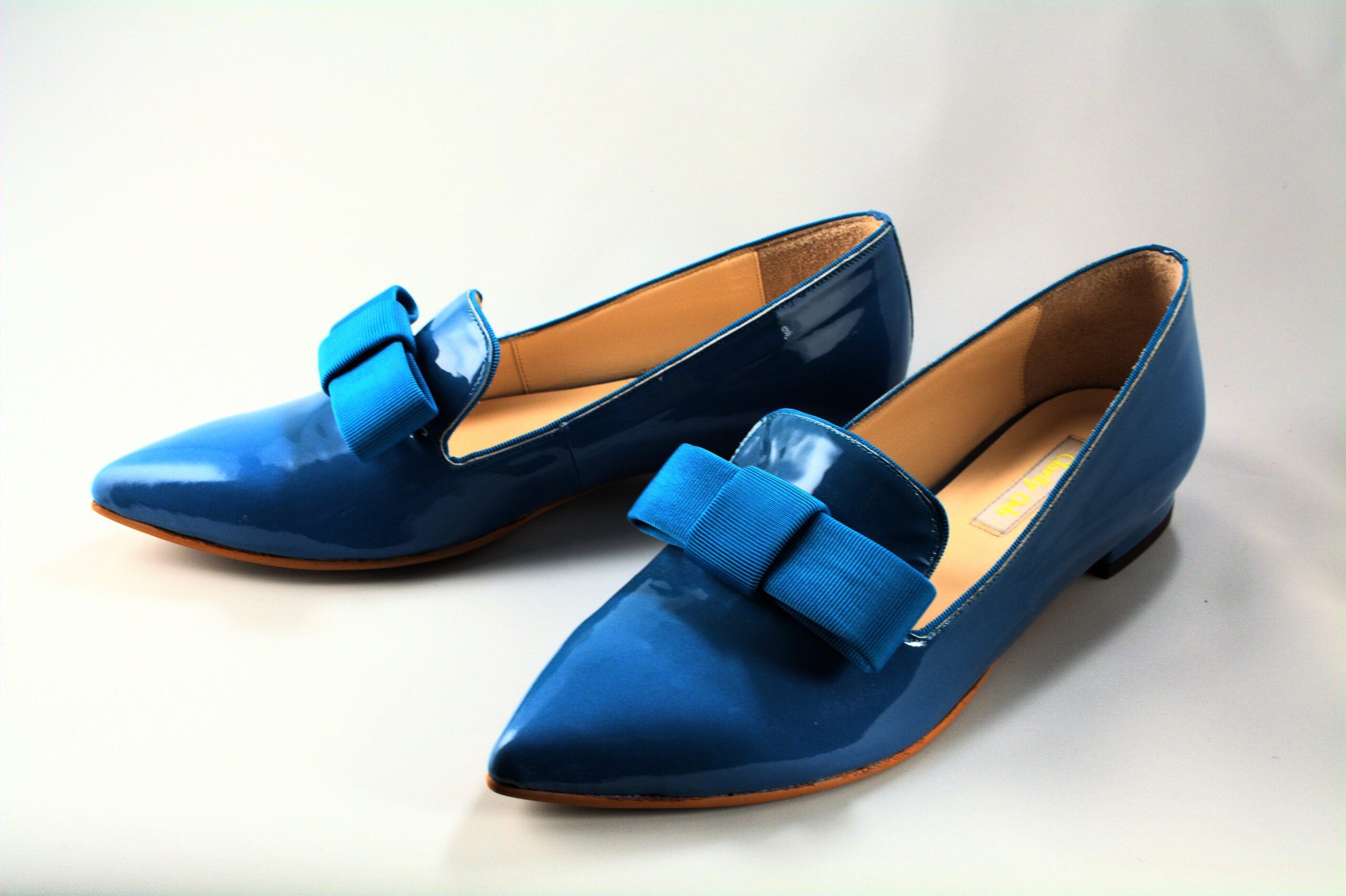 ポインテッドトゥのオペラパンプスタイプのフラットシューズ。