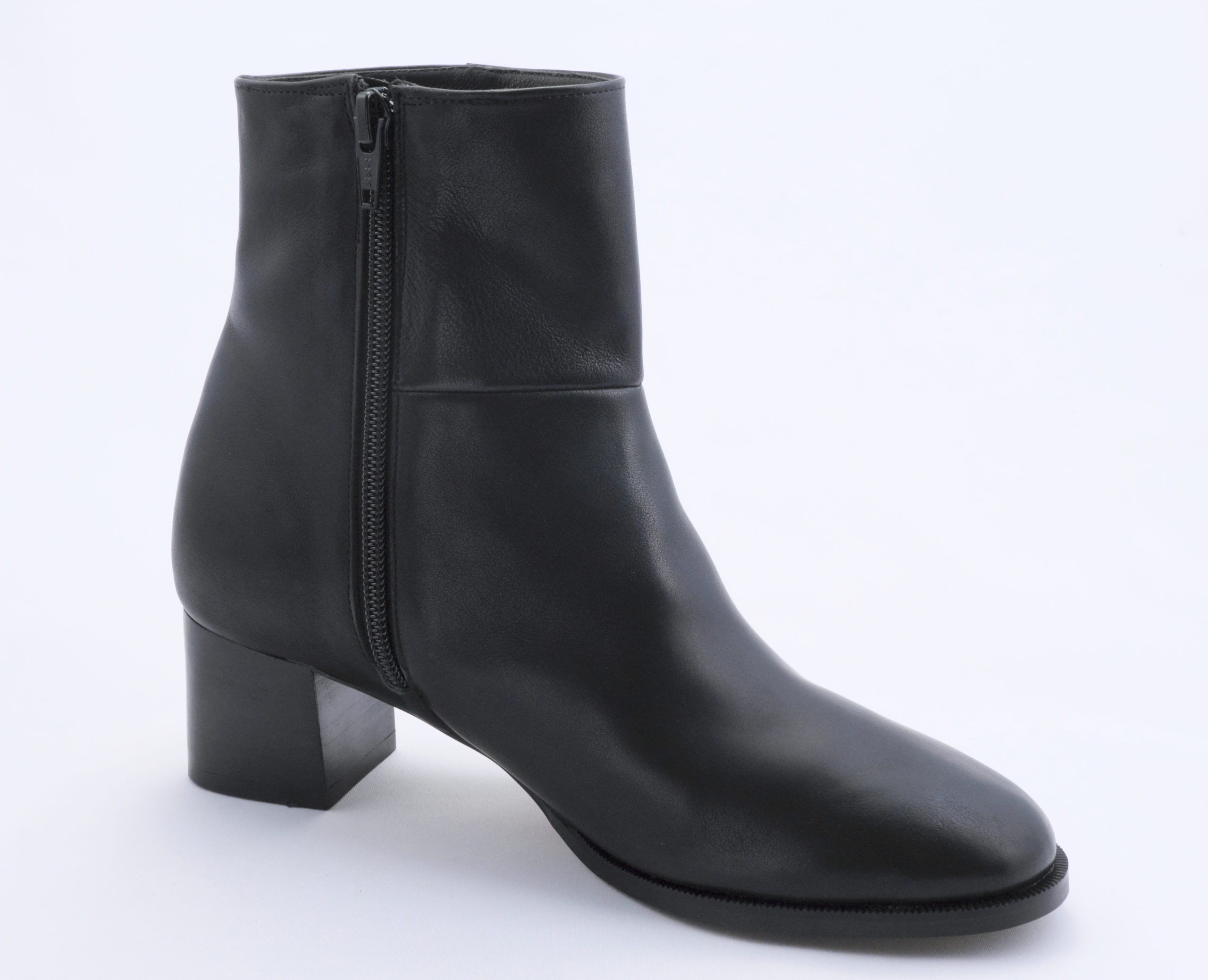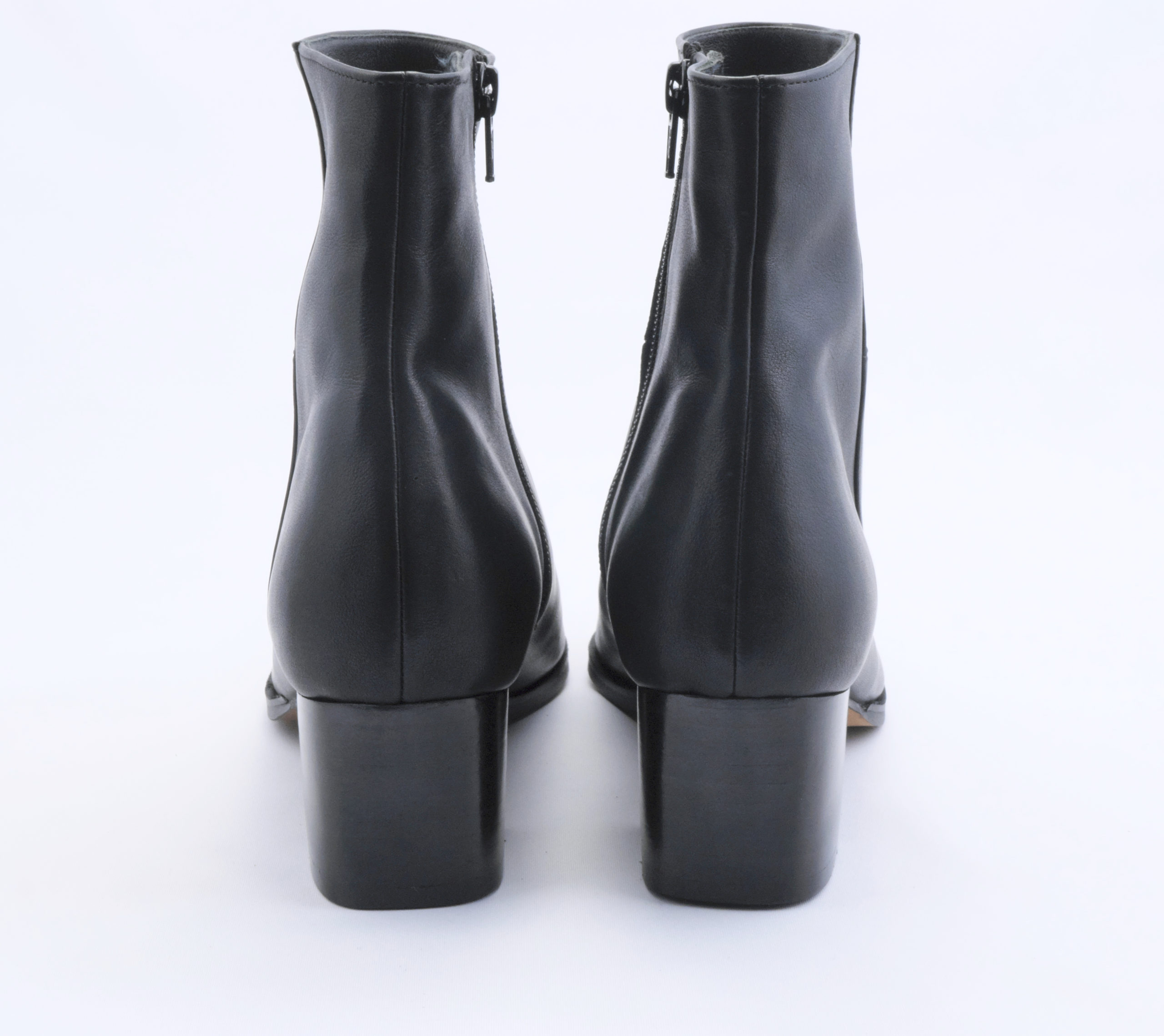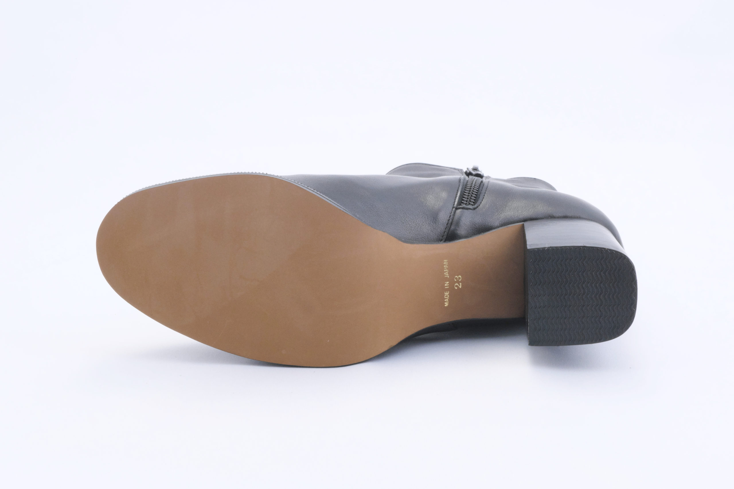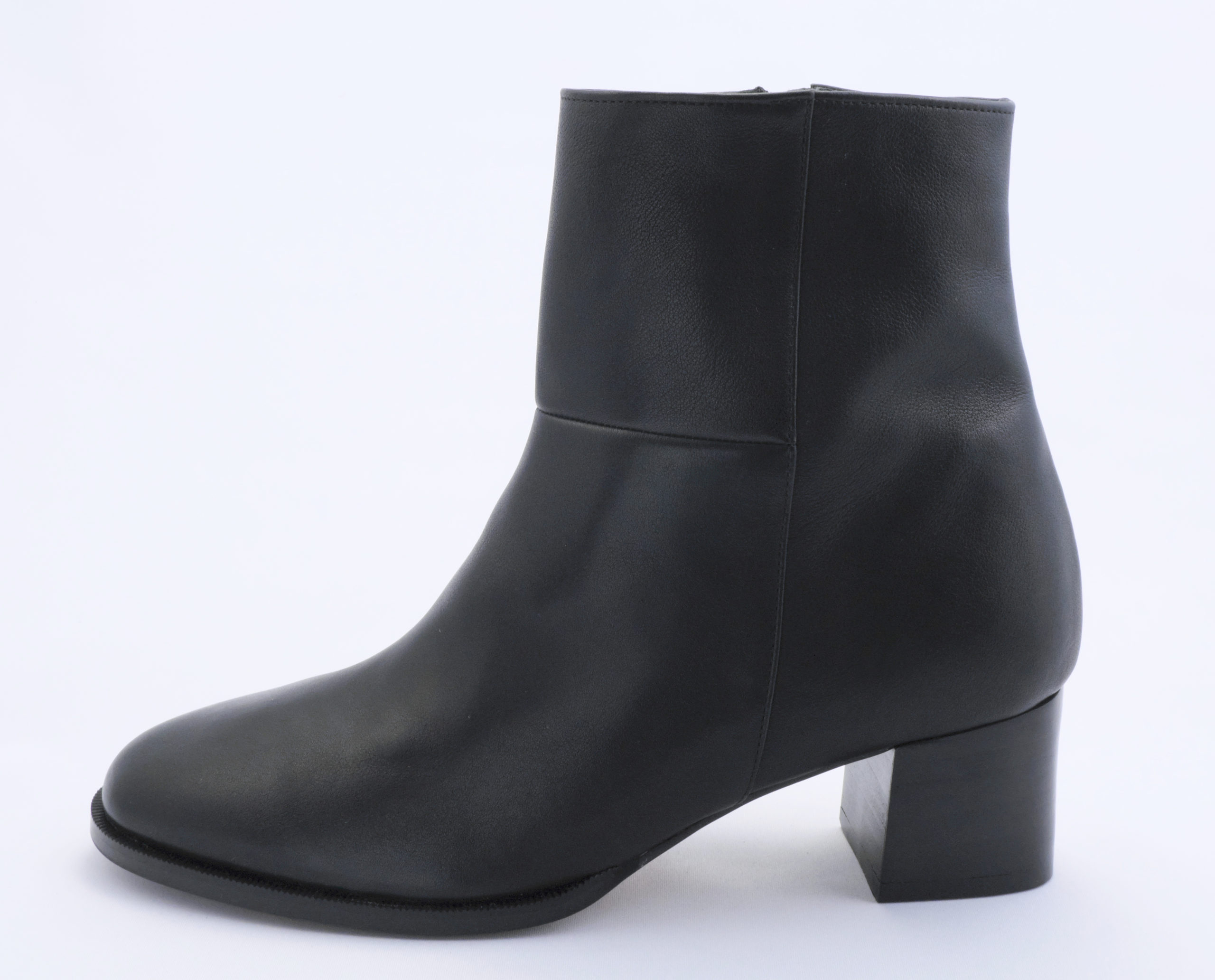 この秋冬の主役、ショートブーツ 太いヒールで安定感抜群、でもボリューム感を抑えるために筒は若干細めにして シルエットがシャープに見えるようにしました。