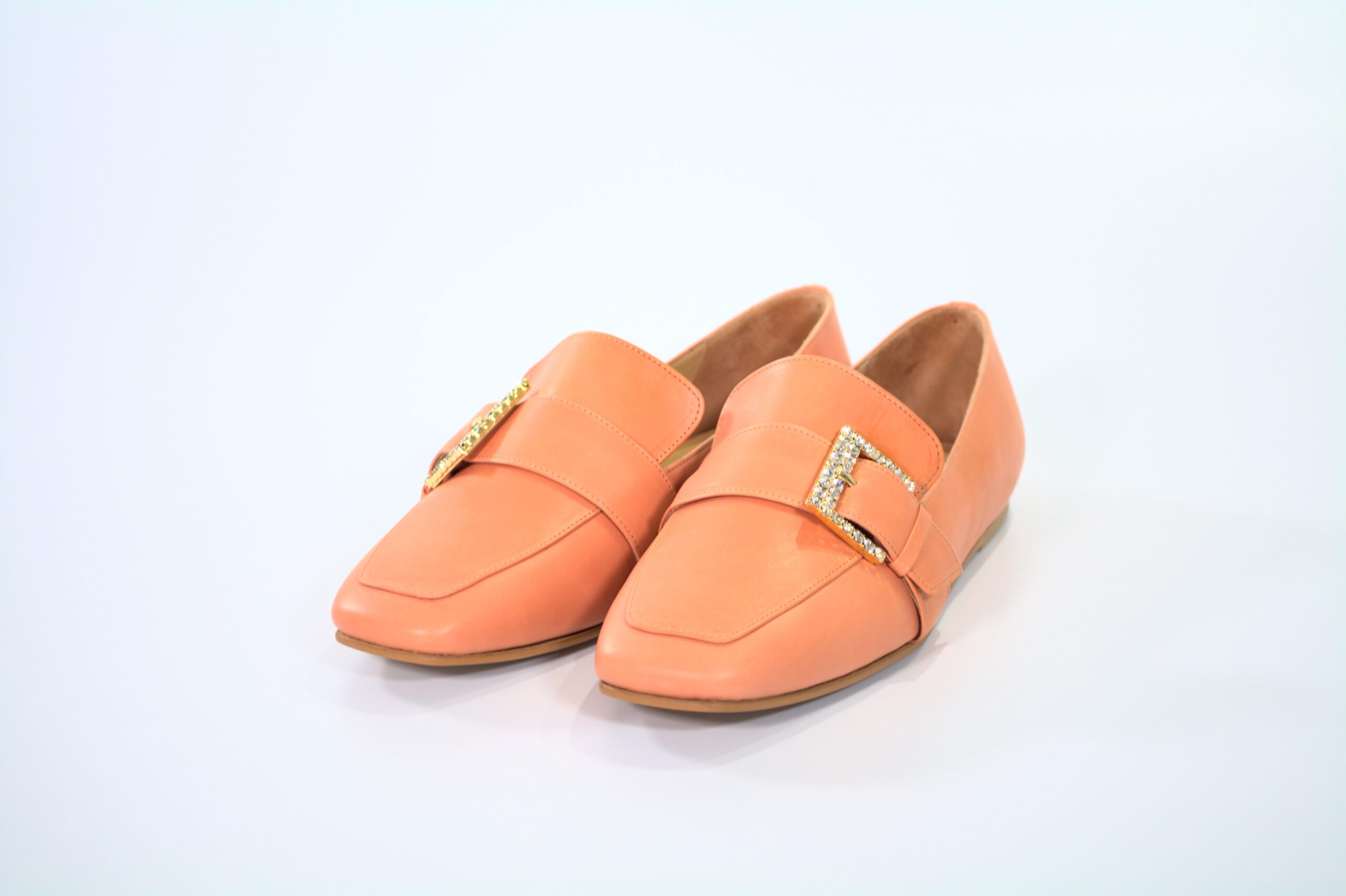 スクゥエアトゥフラットシューズを輝かせるスタッフ